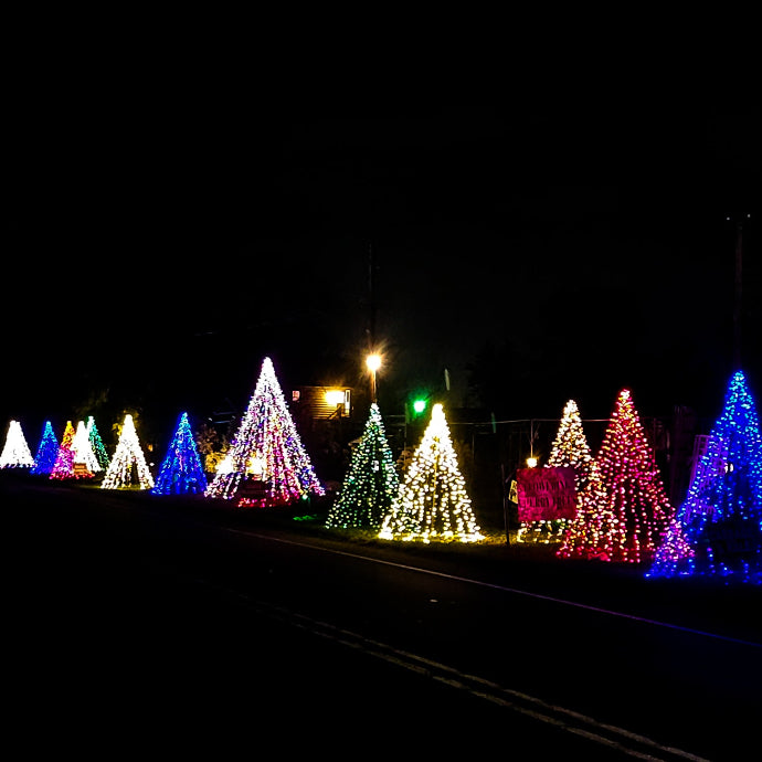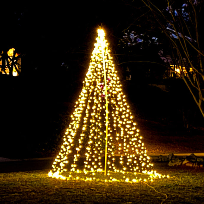 A dazzling lighted holiday tree with 700 LED lights, available in Clear White or Multicolor for a festive outdoor display.