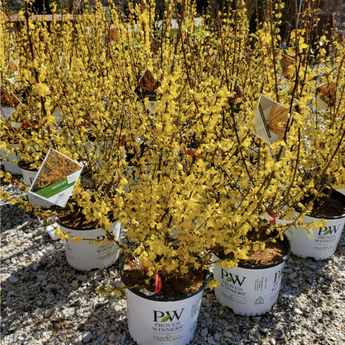 Forsythia (Forsythia spp.) is a hardy deciduous shrub celebrated for its vivid yellow, bell-shaped flowers that appear in early spring before the leaves. Native to East Asia, it thrives in full sun and well-drained soil, growing 1–3 meters tall with either arching or upright branches depending on the species. Easy to cultivate and maintain, it brings a bright burst of color to gardens, especially when pruned after flowering to promote vigorous blooming the next year.