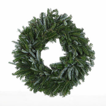 A Fraser Fir Wreath is a beautiful and classic holiday decoration crafted from the fresh, soft needles of Fraser fir branches, known for their rich green color and delightful fragrance. This wreath’s dense, sturdy needles and elegant symmetry make it an excellent choice for doors, windows, or above fireplaces. Durable and long-lasting, it can be decorated with ribbons, lights, or ornaments for a festive touch, bringing the timeless charm and fresh scent of the holiday season into your home.