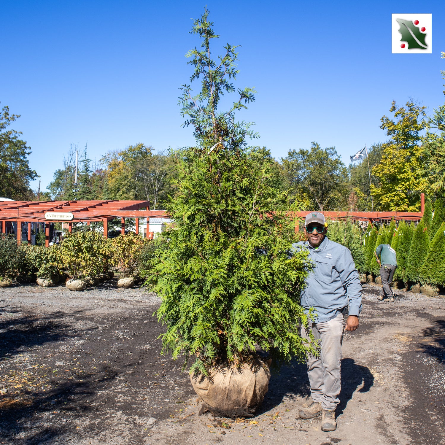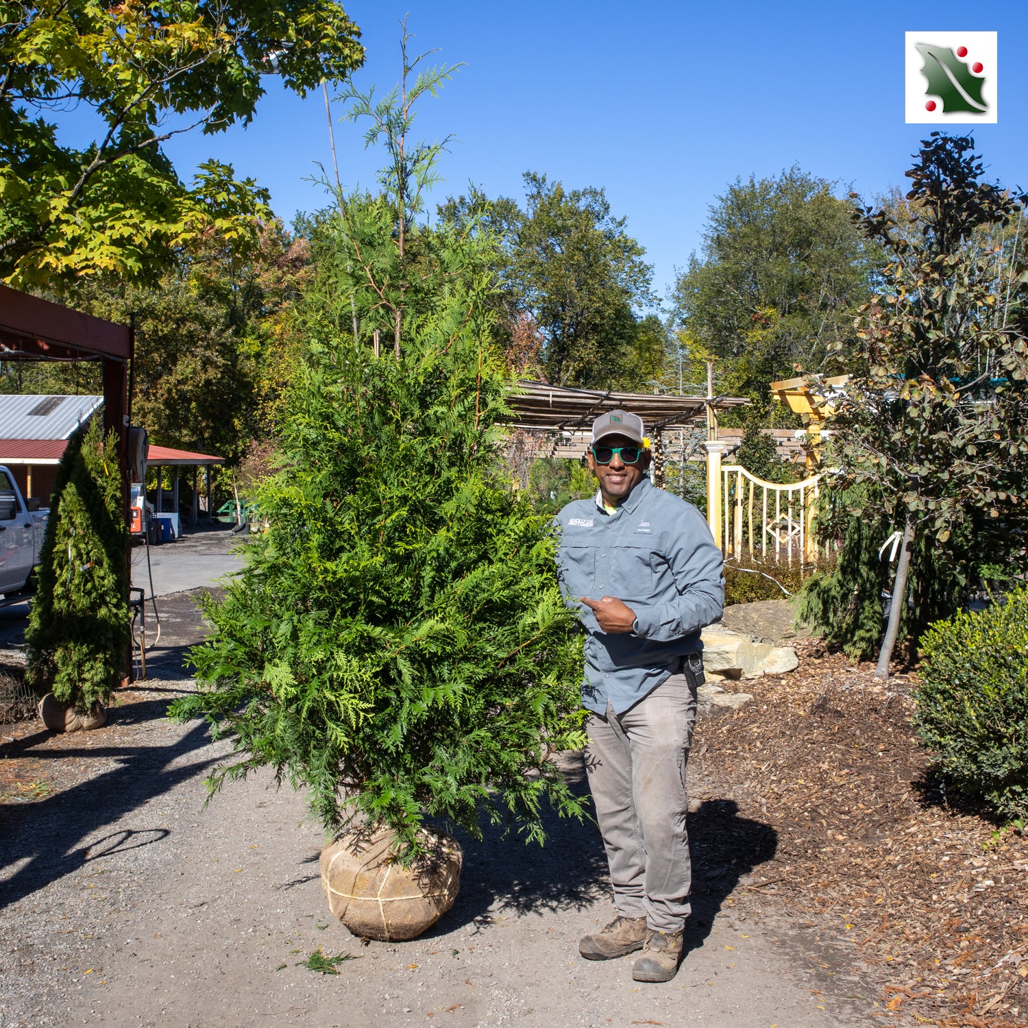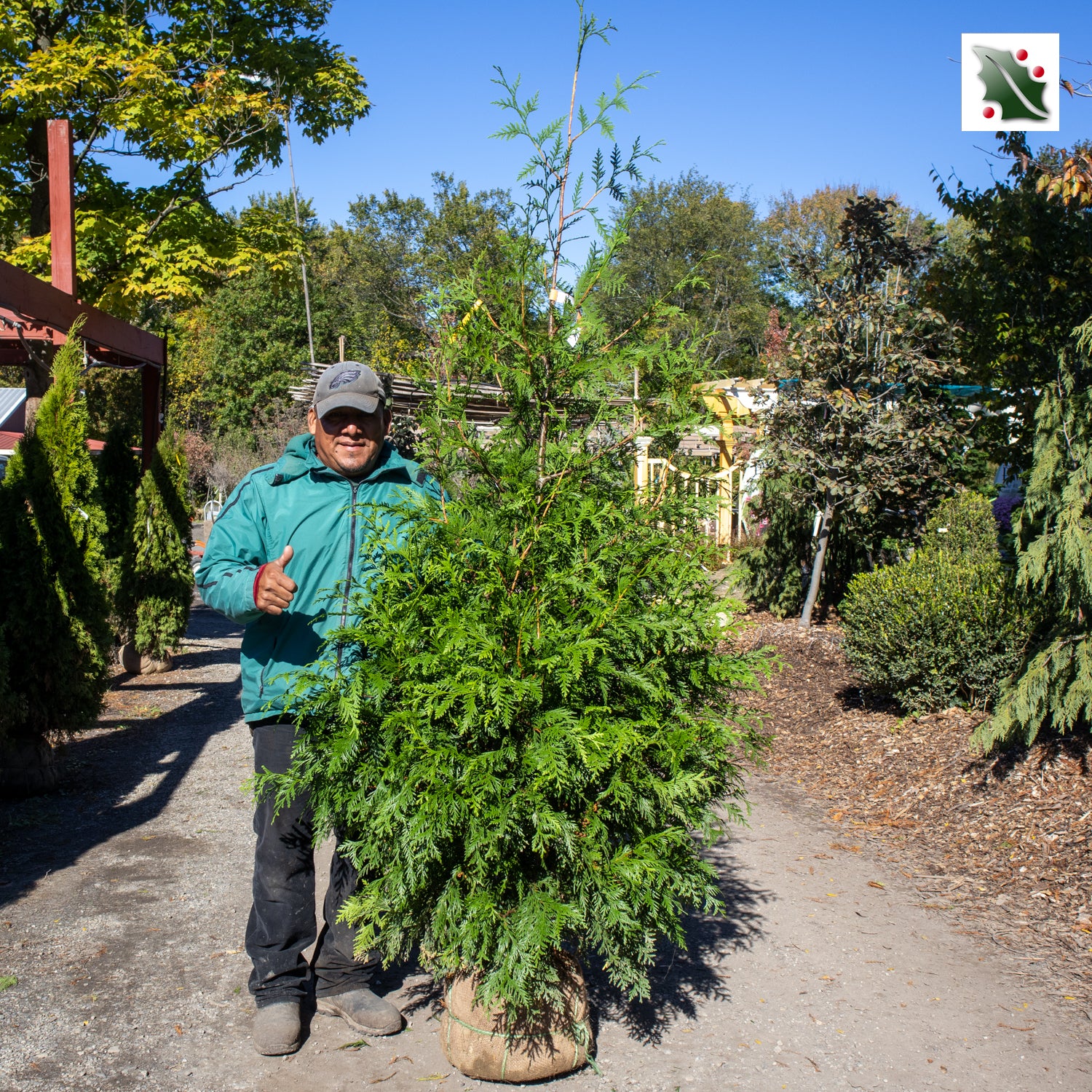 Green Giant Arborvitae (Thuja standishii x plicata 'Green Giant') is a fast-growing, evergreen conifer known for its dense, pyramidal shape and rich green foliage. Ideal for privacy screens, windbreaks, or formal hedges, it can grow up to 3 feet per year under optimal conditions, eventually reaching heights of 25 to 30 feet with a spread of 10 to 15 feet. This low-maintenance tree is highly resistant to pests, deer, and disease, and it tolerates a wide range of soil types and climates. Its vibrant color holds year-round, making it a popular choice for homeowners and landscapers seeking an attractive, natural barrier with minimal upkeep.