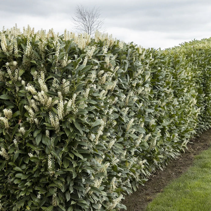 The Schip Cherry Laurel (Prunus laurocerasus ‘Schipkaensis’) is a robust, evergreen shrub known for its glossy dark green leaves and upright, narrow habit, making it ideal for hedges or privacy screens in residential landscapes. It typically matures to around 10–15 feet tall and 5–7 feet wide, offering year‑round coverage with minimal gap. In mid‑spring it produces fragrant white flower spikes, which give way to dark berries that attract birds. The plant thrives in full sun to partial shade, adapts to a range of soils (provided they’re well‑drained), and is hardy in USDA zones 6–9. Its combination of dense growth, low maintenance needs, and sleek appearance make it a dependable choice for straightforward evergreen structure in the garden.
