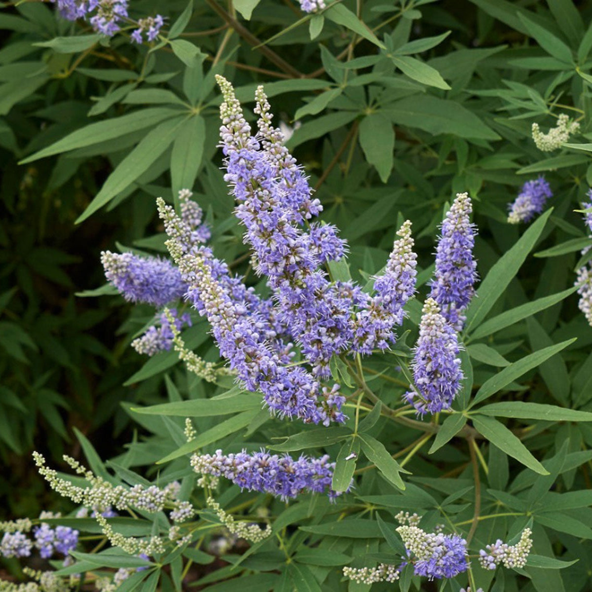 The Chaste Tree (Vitex agnus-castus) is a fast-growing, deciduous shrub or small tree known for its fragrant, spiky clusters of lavender to purple flowers that bloom from summer to early fall. Native to the Mediterranean and Asia, it thrives in hot, sunny locations and well-drained soil, making it a popular choice for drought-tolerant landscapes. Reaching heights of 10–20 feet, the Chaste Tree has attractive, palmate leaves and a vase-shaped form that adds ornamental appeal. It attracts pollinators like bees and butterflies while being resistant to deer and pests. Often used as a focal point or in borders, it brings beauty, fragrance, and ecological benefits to gardens.